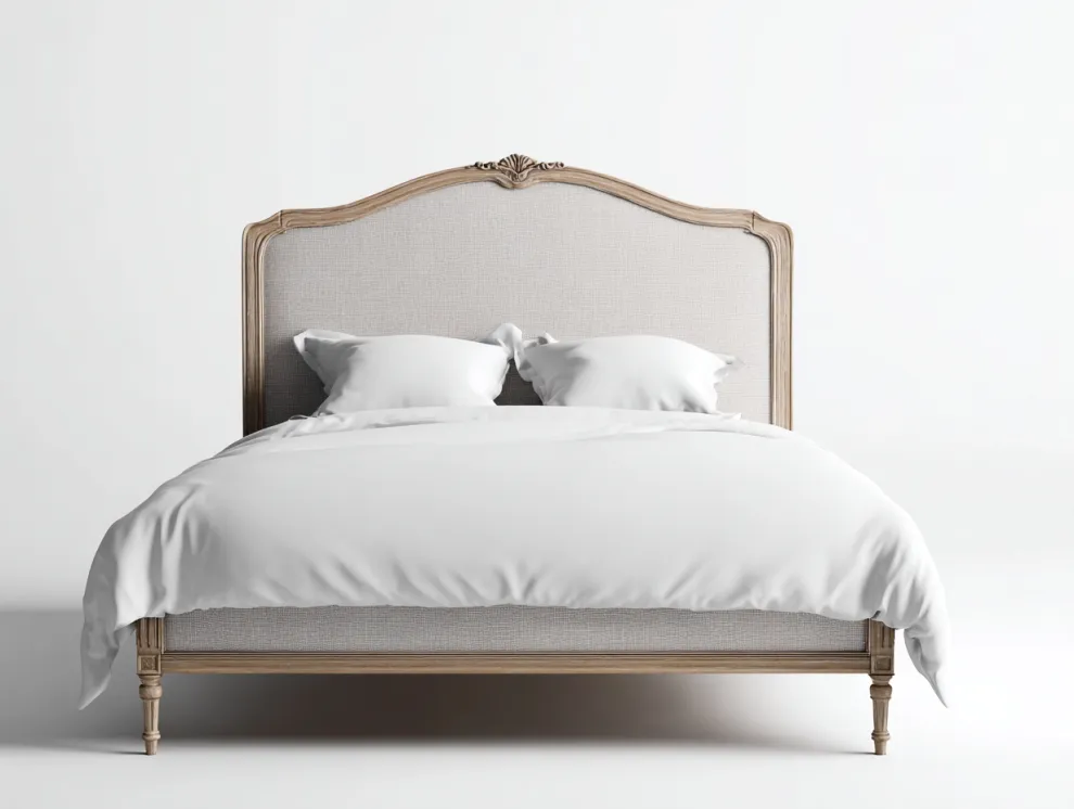Letto matrimoniale imbottito 200x180x125cm - beige/legno naturale - per camera da letto - stile francese