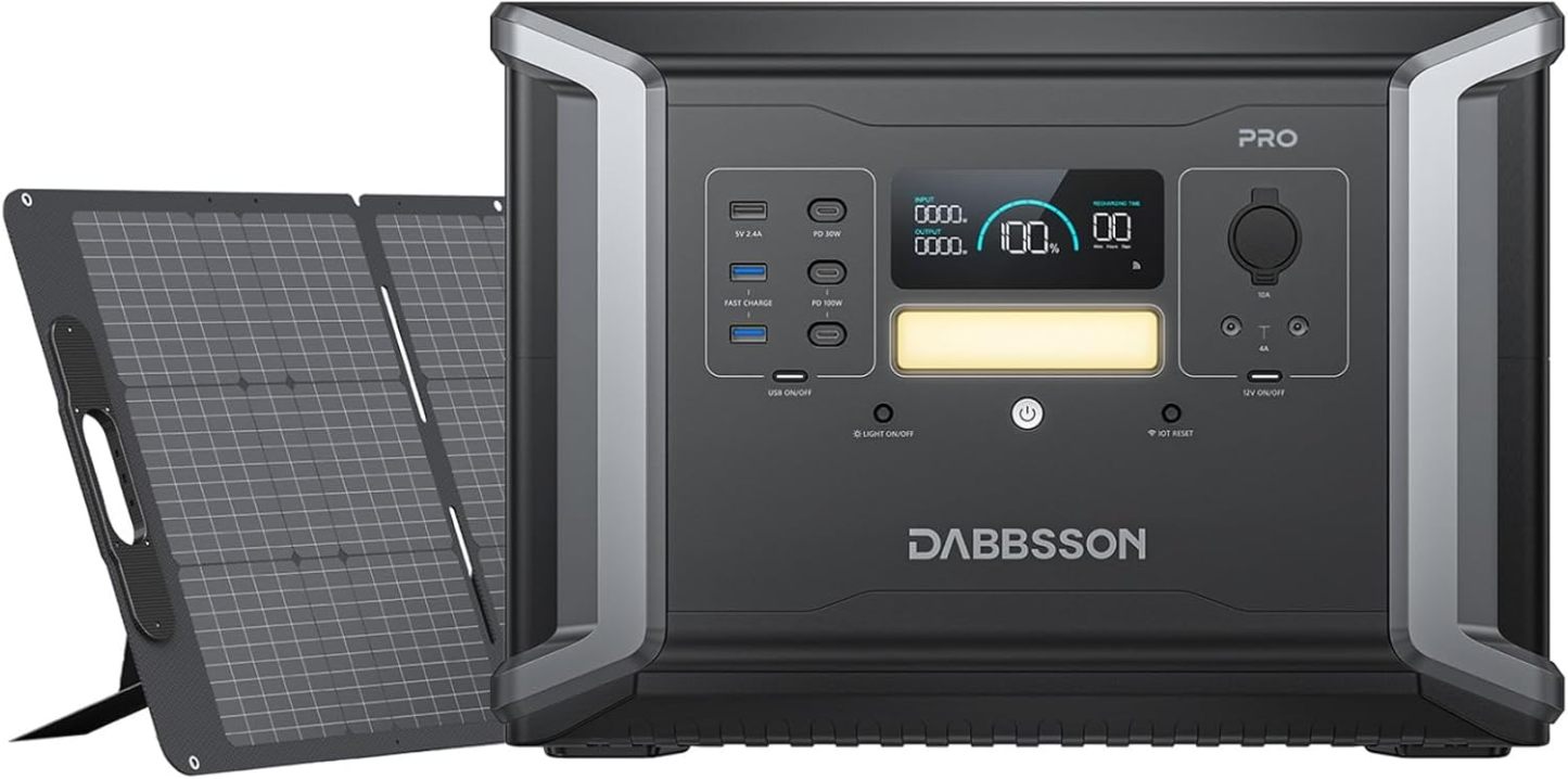 Dabbsson Generatore solare DBS2100Pro con pannello solare da 120W, centrale elettrica portatile da 2400W e 2150Wh, capacita espandibile con batteria LiFePO4